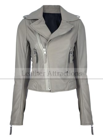 This cropped leather biker jacket has an asymmetric zip fastening, zipped cuffs, collar, lapel popper fastenings and zip pockets with silver zipper detailing. Vintage inspired crop synthetic leather biker jacket. Looks awesome thrown over a cute dress worn with some docs.